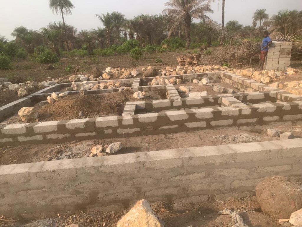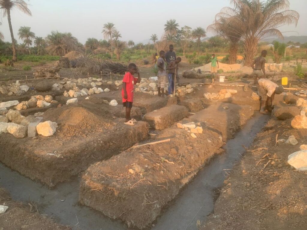 Tijdens hun verblijf bezochten ze het terrein waar Inge’s toekomstige huis wordt gebouwd. Daar zagen ze hoe stenen op traditionele wijze worden gemaakt: een mengsel van zand, water en klei wordt in de zon te drogen gelegd om stevige “zonstenen” te vormen. Dit gebeurt allemaal met de hand! Eenvoudig, maar doeltreffend.